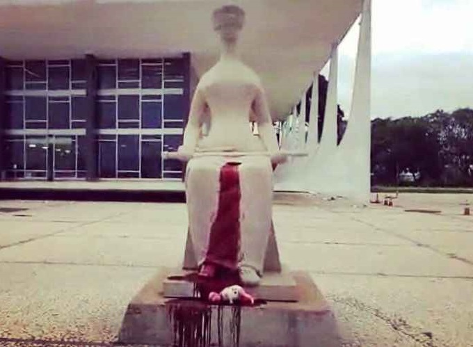 A estátua foi alvo de ataque por dois homens que protestavam contra a decisão da Corte que descriminalizou aborto no primeiro trimestre de gestação.