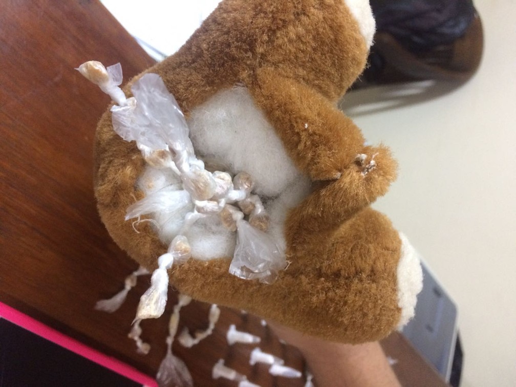 Ainda segundo a polícia, foram realizadas buscas em sua casa onde encontraram dentro de um urso de pelúcia mais 40 pedras de crack e 10 de maconha.