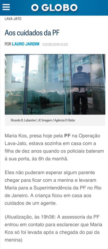 Ao saber da nota, cujo teor é repetido por várias pessoas, a PF teria informado ao Globo que a mãe só foi definitivamente levada quando da chegada do pai.