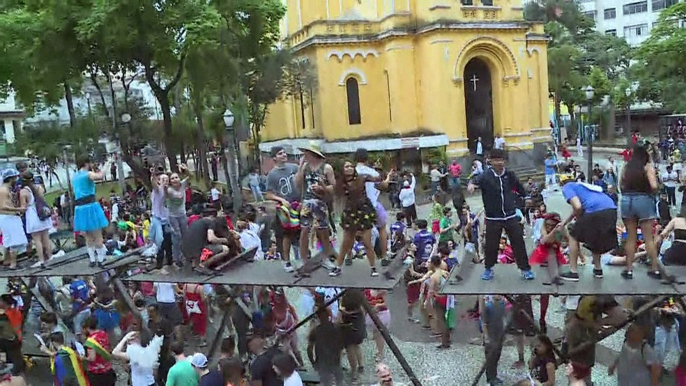 Alguns se excederam. Teve gente dançando em cima de um ponto de ônibus. Dois alunos se penduraram em um poste que carrega a placa do Viaduto do Chá com a Xavier de Toledo.
