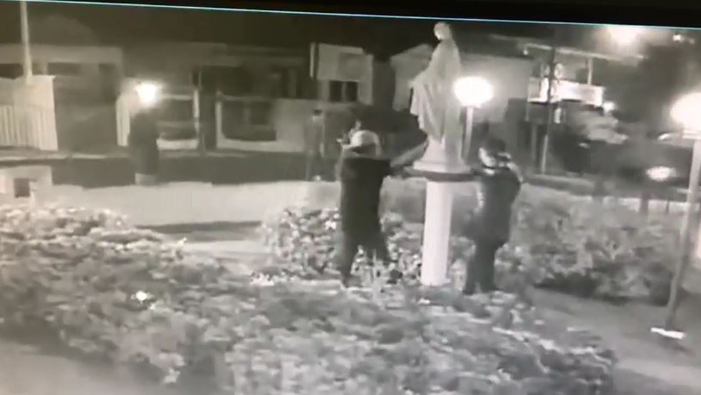 Grupo quebrou imagem de Nossa Senhora das Graças durante a madrugada deste sábado (15), em Cerquilho (SP). Câmeras de segurança da Paróquia São José flagraram o vandalismo.