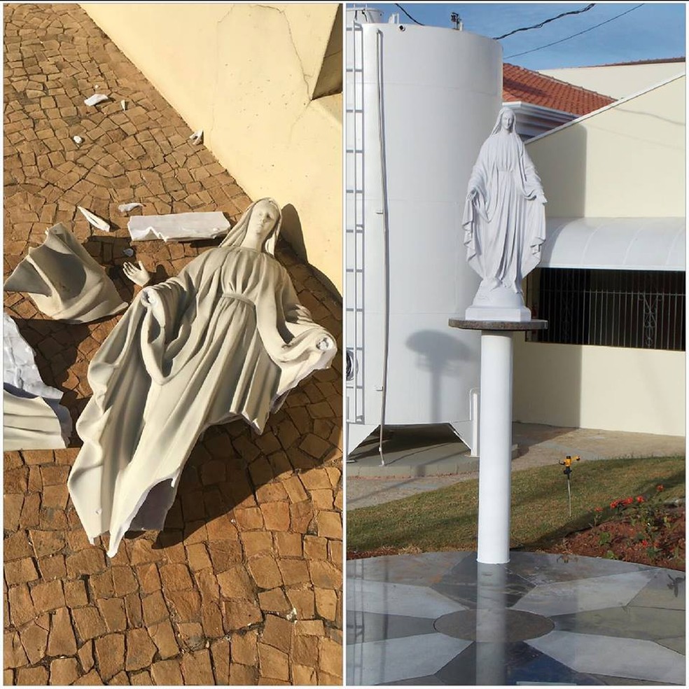 Ainda segundo a paróquia, a imagem de pó de mármore ficava sob um coluna e foi colocada em 28 de setembro de 2014 pelo pároco padre William de Almeida.