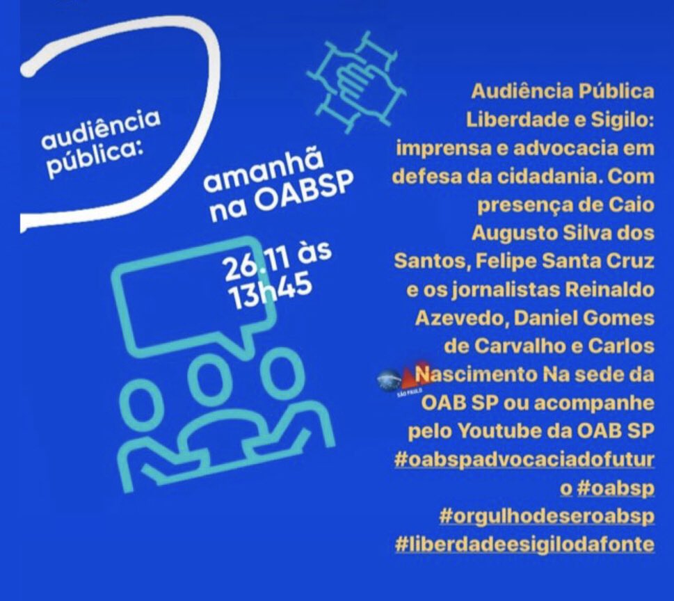 ADVOGADOS E JORNALISTAS DEBATEM EM DEFESA DA CIDADANIA. REINALDO AZEVEDO E CARLOS NASCIMENTO ESTARÃO ENTRE ELES.