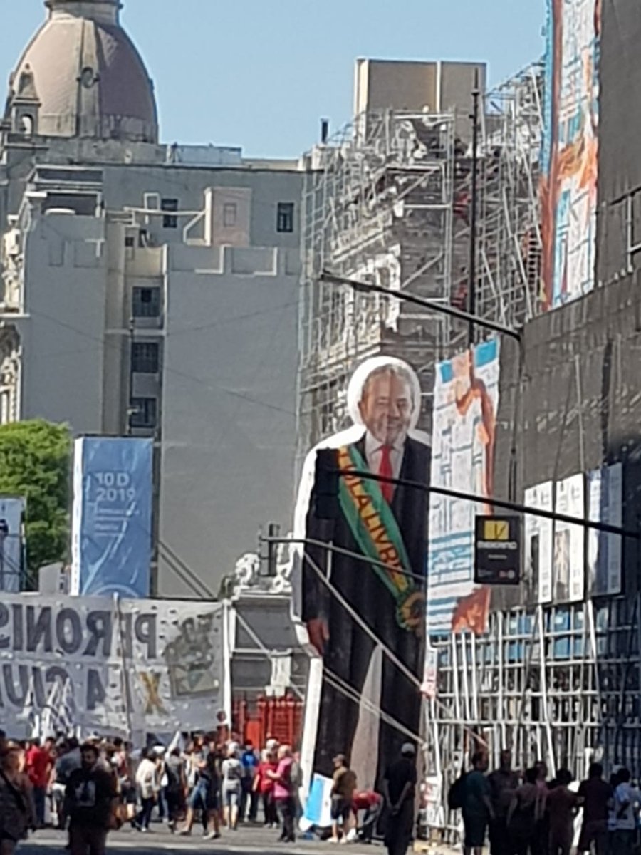 Perto do Congresso na Argentina, na marcha popular para saudar a posse de Alberto Fernández @alferdez tem boneco gigante de Lula @LulaOficial #Argentina #AlbertoPresidente