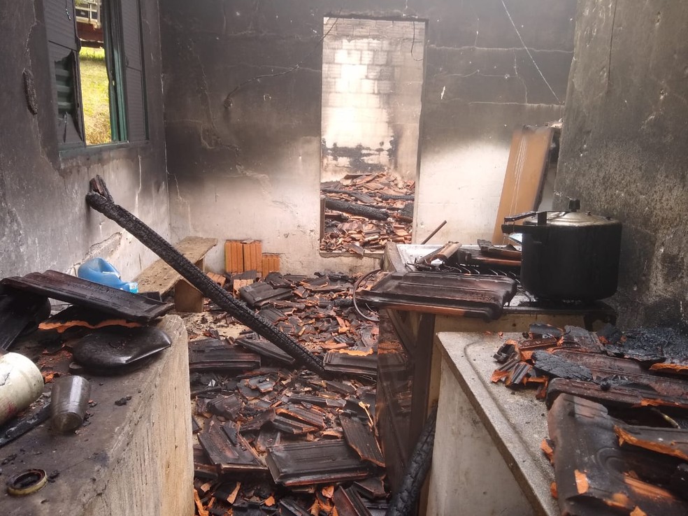 Casa ficou destruída em São Miguel Arcanjo após incêndio — Foto: Brigada de Emergência de São Miguel Arcanjo/Divulgação