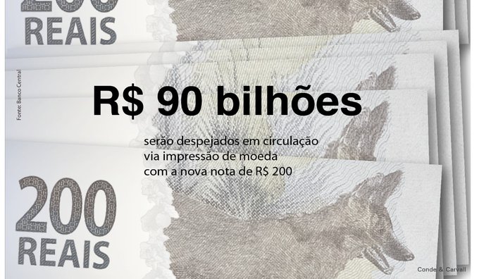 Cédula de 200 reais é muito parecida com a de 20 (o tamanho é idêntico).